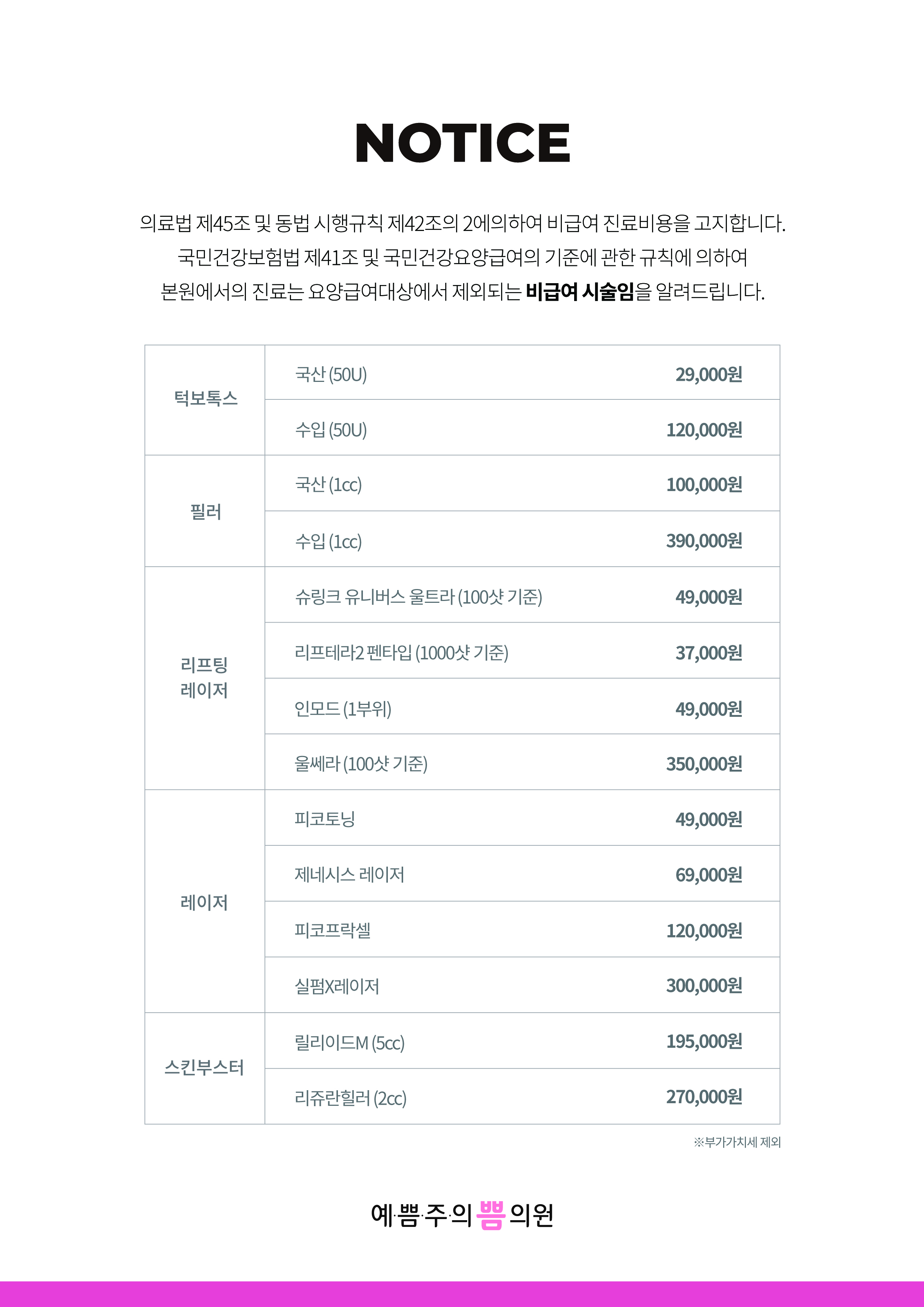 예쁨주의쁨의원 공지사항 게시판이에요